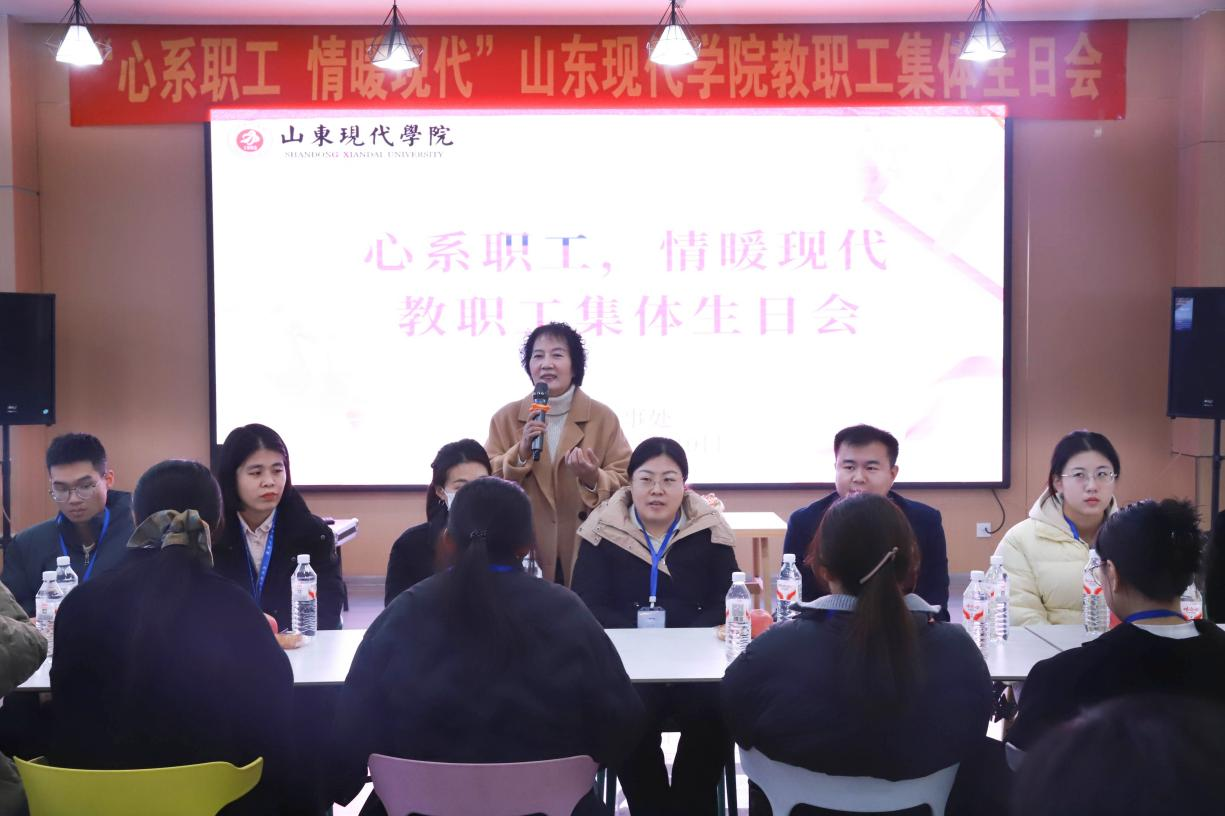 冬意渐浓,暖意依旧。为持续营造温馨和谐、积极向上的校园文化氛围,11月19日上午,在董事长、校长刘春静教授的深切关怀与人事处的精心组织下,山东现代学院在慈俭餐厅成功举办“心系职工,情暖现代”11月教职工集体生日会。党委副书记、副校长帅相志教授,校长助理史德焕与40余名教职工欢聚一堂,在建校32周年的喜庆氛围中,共庆生辰、共话成长。