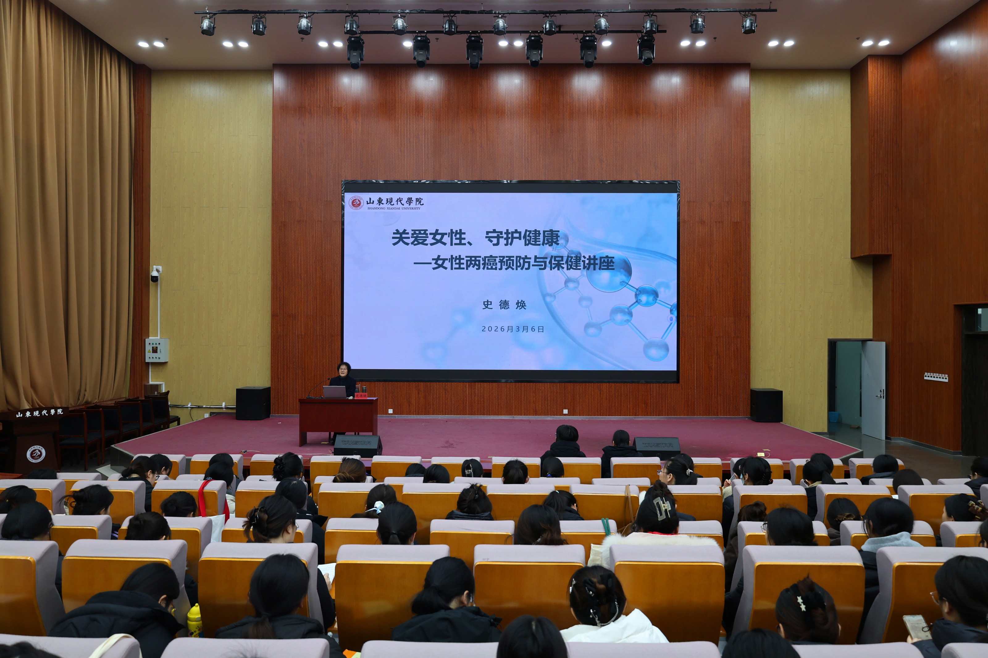 活动分为健康讲座与中医义诊两个环节。在女性健康专题讲座中,校长助理史德焕以“关爱女性,守护健康——女性两癌预防与保健”为主题,围绕女性高发疾病预防、日常健康管理、科学保健理念等内容进行系统讲解,引导广大女性师生树立早筛查、早诊断、早治疗的健康意识,提升自我保健能力。讲座内容贴近需求、通俗易懂,具有很强的指导性与实用性。